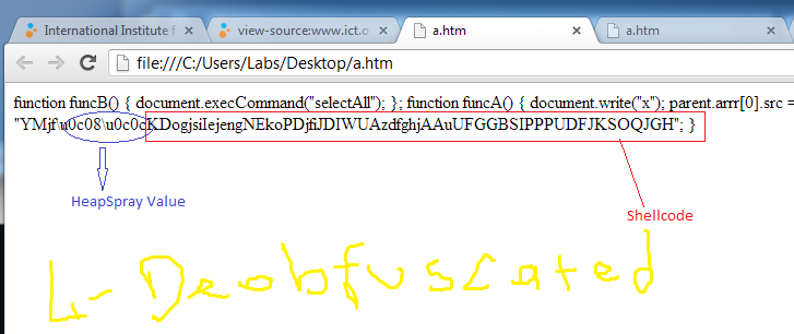 Yukarıdaki şekilde görüldüğü gibi exploit scriptini basit bir şekilde değiştirerek deobfuscate ediyoruz ve aşağıdaki kodu elde ediyoruz.